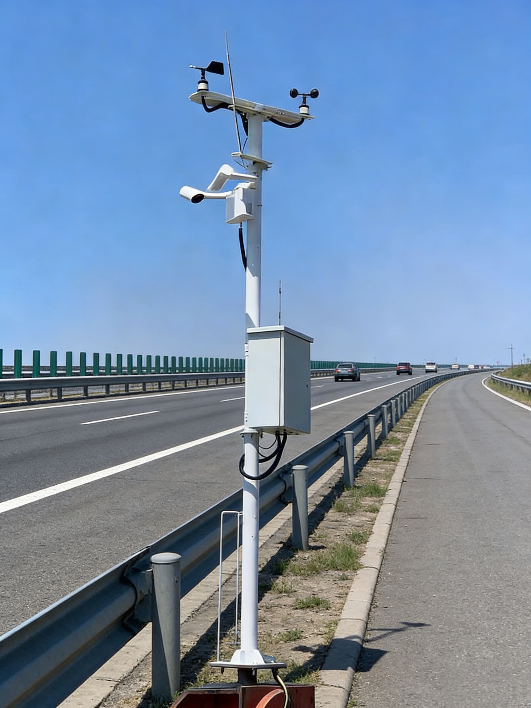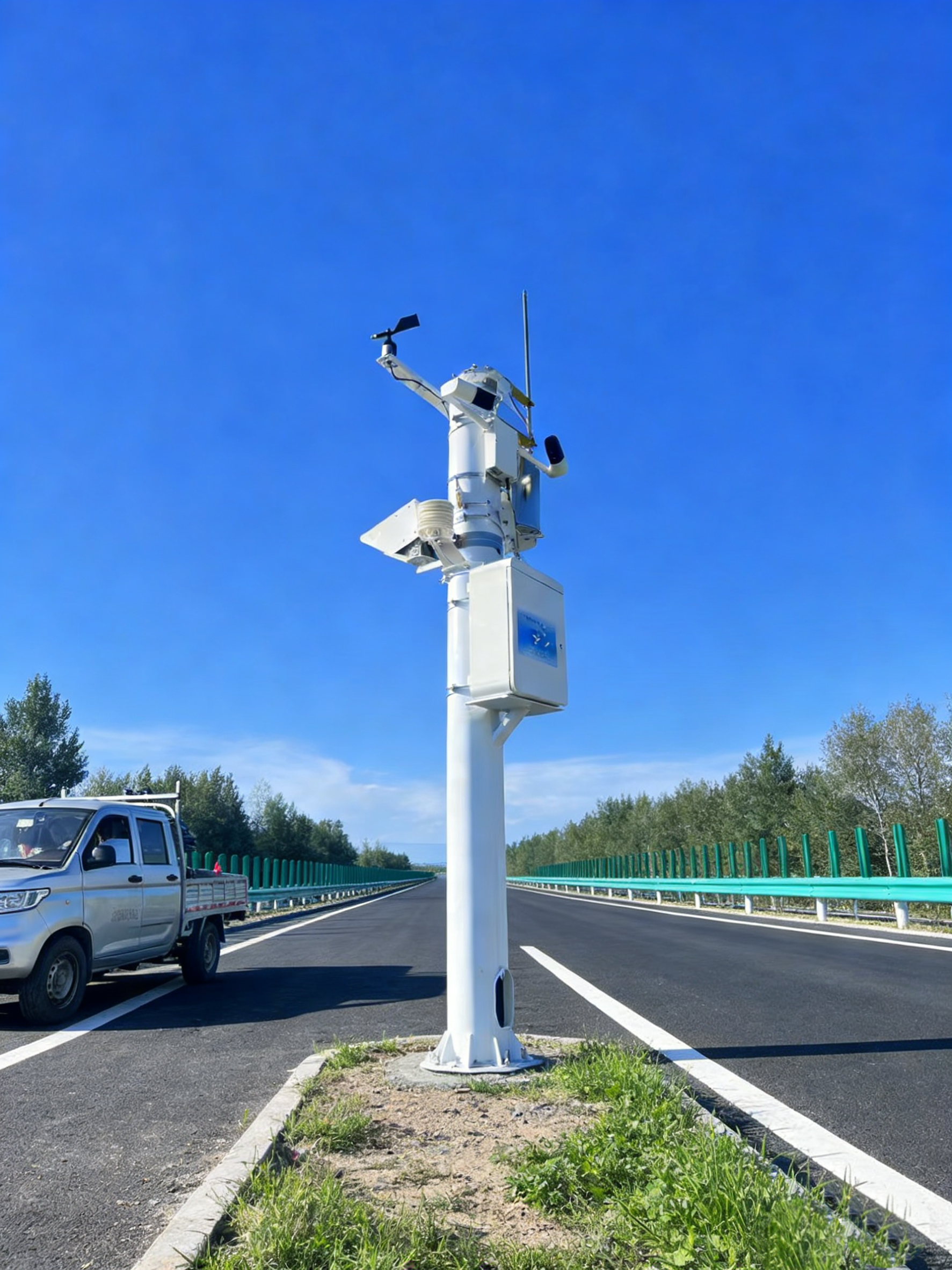 它能通过数据传输系统将监测信息实时推送至交通管控中心,为道路预警、养护作业、车流调度提供科学依据,以此降低雾、雪、冰、暴雨等恶劣天气对交通安全的影响。